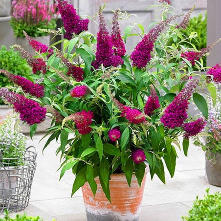 Budleja SUGAR PLUM to wyjątkowa budleja o ogromnych kwiat. Ozdobą budlei są kłosowate kwiatostany przypominające wąskie wiechy lilaka.Dorasta do około 2 metrów wysokości i 1.5 metra szerokości. Kwiaty mają oryginalny amarantowo-fiolotowy kolor i długość do 40 cm. Warto dodać że odmiana "Sugar Plum" to odmiana o największych kwiatach spośród wszystkich budleji. Krzew kwitnie od czerwca do października, przyciąga mnóstwo motyli i owadów zapylających. Budleja najładniej sadzić kilka sztuk w grupie i na trawniku, nie łączyć z innymi krzewami – czyli soliter. Można ją obsadzać bylinami o ozdobnych liściach, jak paprocie, czy funkie, gdyż gałęzie w dolnej części krzewu mają mało liści.