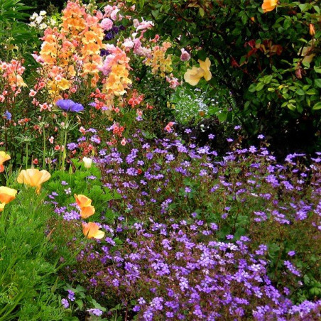 Intensywny Kolor i Delikatna Forma: Kwiaty, choć drobne, mają głęboki, elektryzujący fioletowo-niebieski kolor. Są one liczne i unoszą się na wiotkich, rozgałęzionych pędach, tworząc efekt lekkiej, błękitnej chmurki nad rabatą. Krzew dorasta do około 40-50 cm wysokości i rozprzestrzenia się na szerokość do 60 cm.