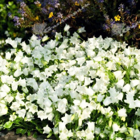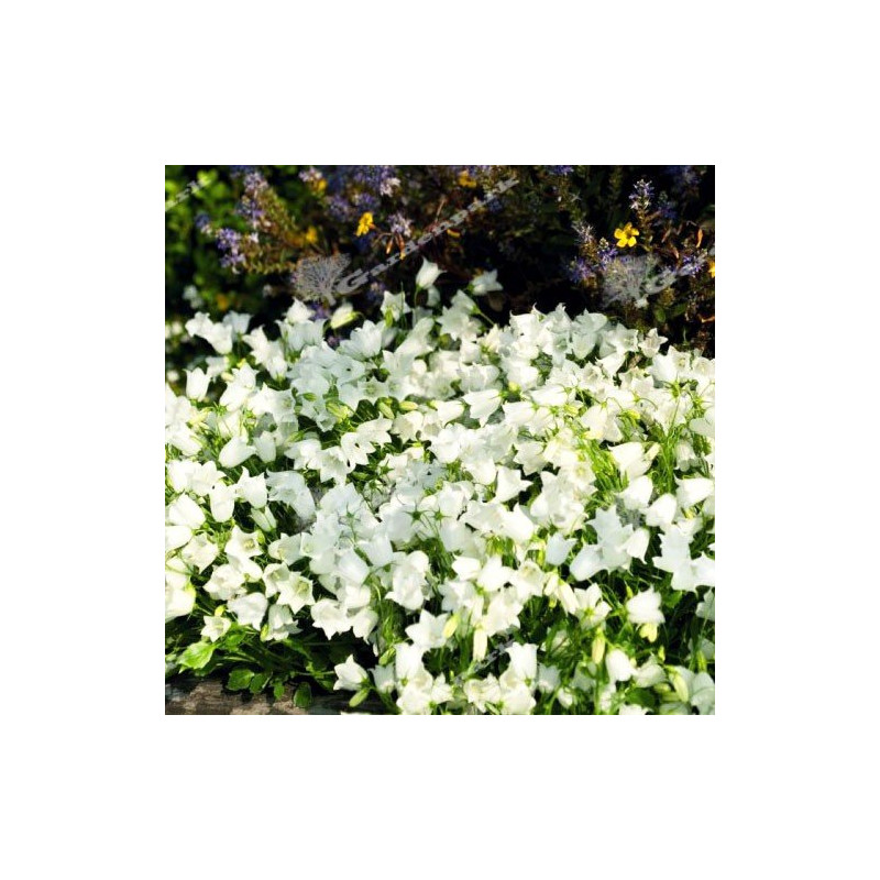 Odmiana dzwonka drobnego, o cudownych, śnieżnobiałych kwiatach.