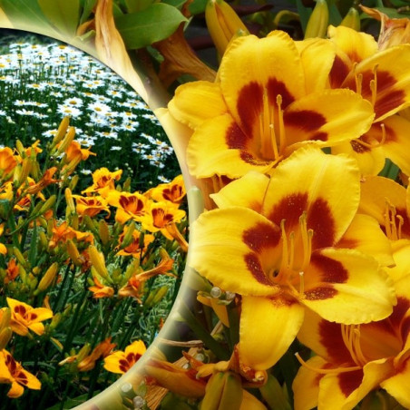 Liliowiec "Black Eyed Susan" jest cudowną odmianą liliowca, dorastającą do 100 cm wysokości. Kwitnie w lipcu pokrywając się setkami pięknych, żółtych kwiatów z czerwonym środkiem, które możemy podziwiać aż do jesieni. Cechą charakterystyczną tej odmiany jest bardzo gęsty, i zwarty pokrój. Liliowce to bardzo wdzięczne rośliny o małych wymaganiach, które mogą być uprawiane praktycznie w każdych warunkach. Najlepiej rośnie na stanowiskach słonecznych. Warto dodać że liliowce są idealnymi roślinami dla ludzi, którzy chcą rozpocząć swoją przygodę z botaniką.