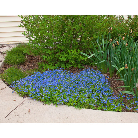 Veronica peduncularis 'Georgia Blue' to roślina zadaniowa. Dzięki swojemu płożącemu pokrojowi i szybkiej zdolności do zadarniania, znajduje zastosowanie w wielu miejscach w ogrodzie, rozwiązując przy tym typowe problemy ogrodników.