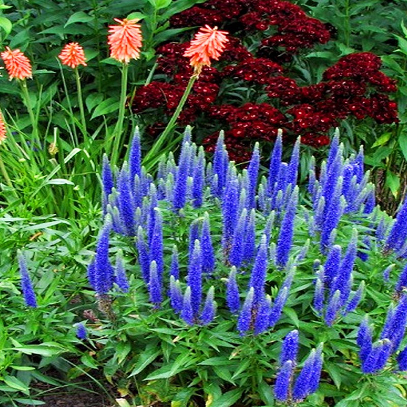 Przetacznik kłosowy Nana Blautappich to odmiana o niebieskiej barwie.
