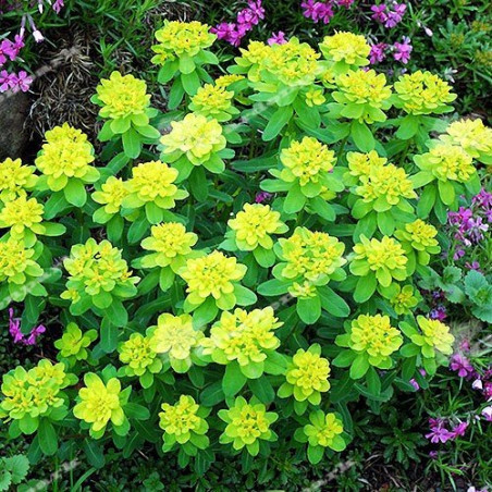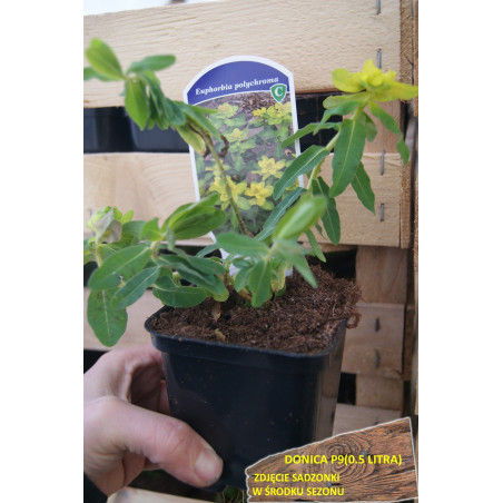 Wilczomlecz złocisty - to bardzo obficie kwitnąca bylina skalna o złoto-zółtych kwiatach. Dorasta do 40 cm wysokości i podobnej szerokości. Ma bardzo zwarty i regularny pokrój z regularnie rozmieszczonymi pędami. Kwitnie obficie w maju oraz czerwcu obsypując się dużą ilością złotych kwiatków. Jesienią liście przebarwiają się na czerwono.