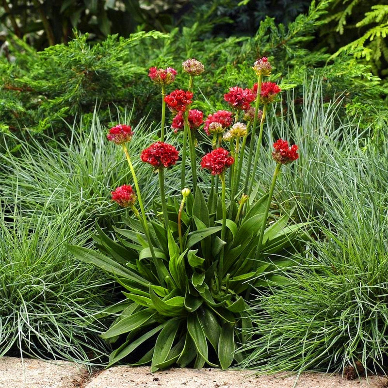 Zawciąg szerokolistny Ballerina Red (łac. armeria pseudarmeria Ballerina Red) to atrakcyjna, zimozielona bylina o kompaktowym pokroju. Roślina dorasta do 30–40 cm wysokości w czasie kwitnienia, a jej szerokość to ok. 25–30 cm. Tworzy niskie, poduszkowate kępy z ciemnozielonych, lancetowatych liści. Ważne jest, że zachowują one swój kolor przez cały rok. Jednak to kwiaty stanowią największą ozdobę zawciągu. Mają intensywnie czerwony kolor i zebrane są w kuliste kwiatostany. Wyglądają efektownie również dzięki temu, że znajdują się na długich, wzniesionych pędach. Zawciąg szerokolistny Ballerina Red kwitnienie rozpoczyna się w maju i może trwać aż do lipca. Dodatkowo ta miododajna roślina do ogrodu przyciągając owady zapylające, takie jak pszczoły i motyle.