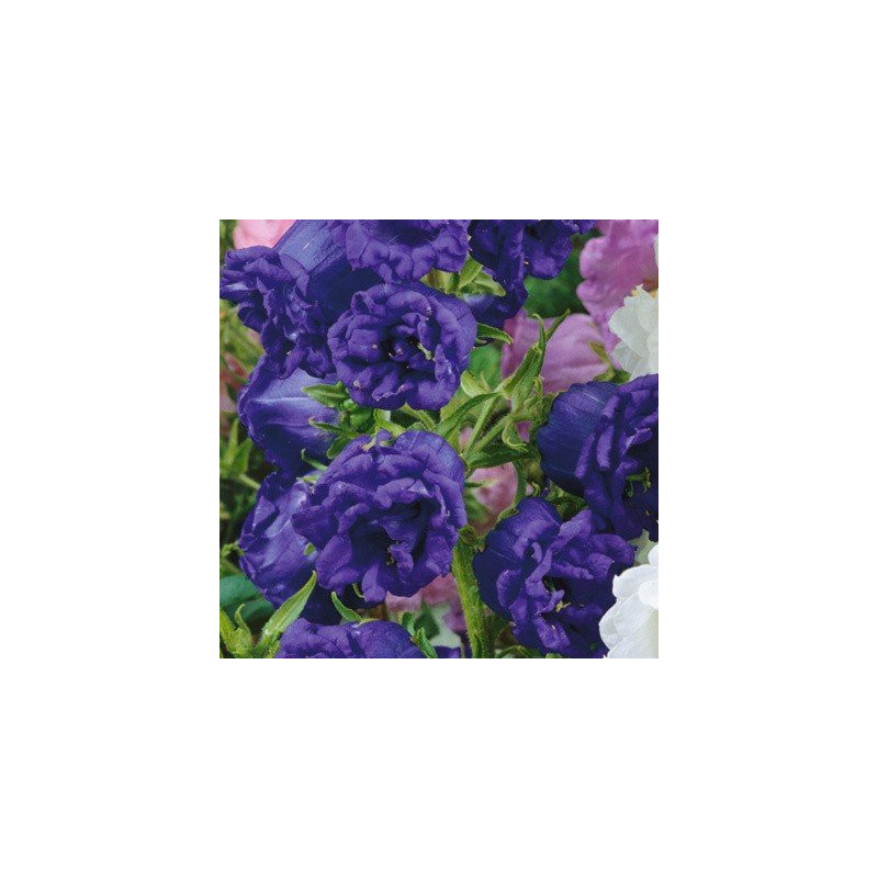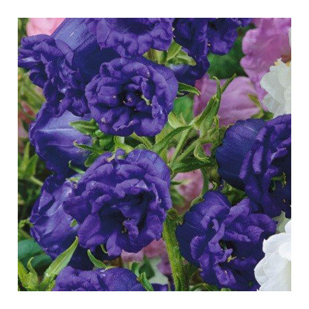 Blue Double to odmiana o ciekawym, podwójnych kielichowatym pokroju. Dorasta do około 60 cm wysokości i nieco mniejszej szerokości. Cechą charakterystyczną tej odmiany są podwójne kielichowate kwiaty o pięknej fioletowo-niebieskiej barwie. Termin kwitnienia przypada na okres od czerwca do sierpnia. Idealnie nadaje się na kwiat cięty.