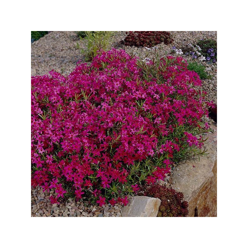 Floks szydlasty Scarlet Flame - inaczej płomyk szydlasty to zadarniająca bylina tworząca niskie 10 cm wysokości kobierce. Łodygi dosyć cienkie rozgałęzione nadają bylinie efektu. Kwitnie bardzo obficie od kwietnia do maja, tworząc bajkowe dywany. Kwitnienie tej odmiany floksa jest tak intensywne, że bordowo-zielone kępki tej byliny całkowicie pokrywają się mnóstwem delikatnych, białych płatków. Warto sadzić po kilka sztuk obok siebie dla uzyskania upragnionego efektu. Jest to roślina mało wymagająca, łatwa w uprawie. najlepszym stanowiskiem jest słońce lub półcień.