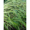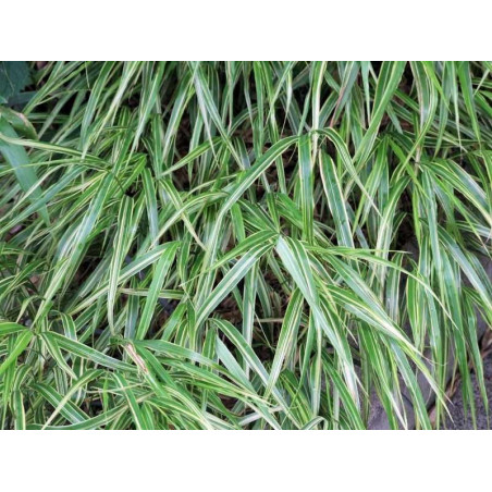Hakonechloa macra Albostriata to niska trawa tworząca kępy łagodnie zwieszających się liści paskowanych podłużnie kolorami bieli i zieleni. Jeśli uprawiana jest w pełnym słońcu, to jesienią na liściach pojawiają się czerwone przebłyski, następnie liście brązowieją. Dorasta do 30-40 cm wysokości. Mrozoodporność pełna. Hakonechloe nie lubią zimą wilgoci, dlatego należy je okrywać zimą.