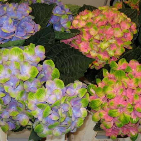 Jedyna w swoim rodzaju hortensja ogrodowa o dwubarwnych kwiatach. Osiągająca maksymalnie 80 cm wysokości i podobnej szerokości. Kwiaty ozdabiają krzew aż do jesieni nieco tracąc swoje intensywne barwy. Kwiatostany o barwie na początku - żółtej, potem stopniowo przechodzącej w lekki róż, aby pod koniec zakończyć przebarwianie kontrastową dwubarwnością - wtedy kwiaty są żółto-różowe. Barwa kwiatów może różnic się zależnie od odczynu gleby - na podłożu kwaśnym zamiast barwy różowej dominować będzie barwa niebieska, pozostałe barwy pośrednie zachowane są niezależnie od warunków glebowych.