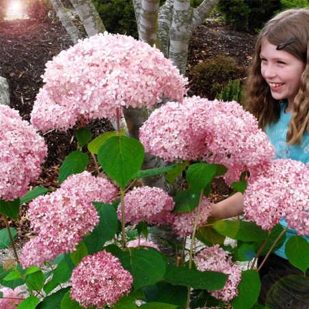 "Pink Annabelle" to zupełnie nowa odmiana hortensji krzewiastej. Po latach starań ogrodnikom udało się otrzymać hortensję w kolorze różu. Jest to następczyni hortensji "Annabelle". Osiąga około 120 cm wysokości oraz podobnej szerokości. Odmiana powtarzająca kwitnienie, zaczyna kwitnąć w czerwcu i kwitnie aż do pierwszych przymrozków. Kwiaty na starszych okazach potrafią osiągać nawet 40 cm średnicy.