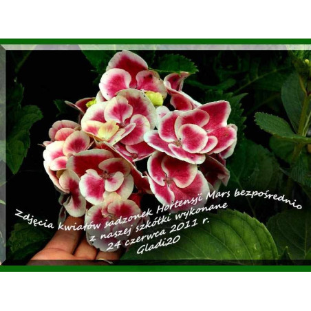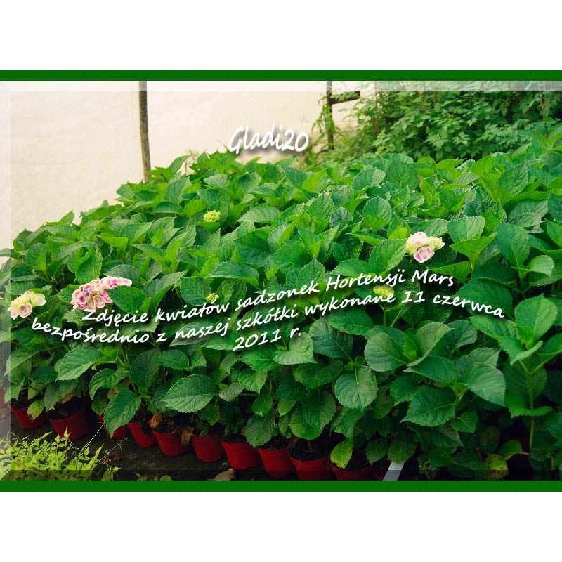 Odmiana należąca do rodziny hortensji kompaktowych, czyli hortensji, które osiągają maksymalnie 100cm wysokości oraz podobnej szerokości. Charakteryzuje się dwukolorowymi płatkami kwiatów. Na początku kwitnienia płątki odmiany Mars są czerwonawe z grubą, białą obwódką, z czasem ich brzegi zielenieją. Środkowa część płatków przybiera niekiedy odcień ciemno - różowy, lub karminowy.