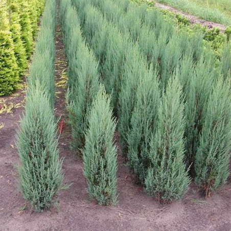 Jałowiec skalny Blue Arrow to jedna z najwęższych, kolumnowych, wolno rosnących odmian jałowca. Osiąga w wieku 10 lat około 2 - 3 m wysokości. Pędy sztywne, ustawione pionowo, silnie przylegające do przewodnika. Ulistnienie niebieskie w formie łusek, niekłujące. Wymagania glebowe i wilgotnościowe małe. Polecany do małych ogrodów przydomowych, skalnych i wrzosowiskowych. Wymagania glebowe i wilgotnościowe niewielkie.