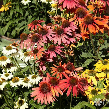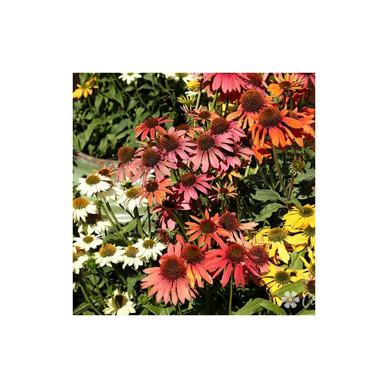 Jeżówka Cheyenne Spirit (Echinacea hybrida ‘Cheyenne Spirit’) to niezwykle dekoracyjna, wieloletnia bylina o wyjątkowej różnorodności barw kwiatów. Na jednej rabacie możesz podziwiać odcienie czerwieni, pomarańczu, żółci, różu, purpury i bieli – wszystkie tworzące harmonijną, letnią feerię barw. Kwiaty są duże, trwałe i osadzone na mocnych, wyprostowanych łodygach, które nie wymagają podpór.