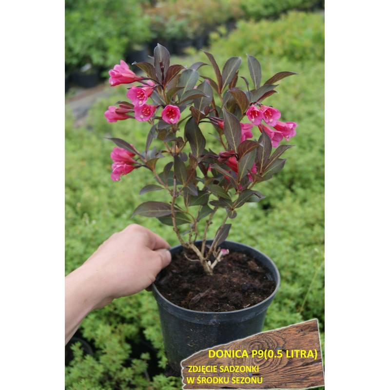 Krzewuszka cudowna "TANGO" to piękny, gęsto rosnący krzew. Kwitnie obficie w maju i czerwcu, obyspany różowym kwieciem pięknie prezentuje się na zielonym tle innych roślin. Jest to roślina polecana szczególnie do ogrodów, w którym znajdują się inne krzewuszki i niskie krzewy liściaste. Rośnie na każdej glebie, kwitnie równie dobrze na stanowiskach słonecznych jak i cienistych. Wymaga corocznego cięcia. Krzewuszka Tango - dlaczego właśnie ona?Krzewuszka Tango osiąga wysokość od 1,5 do 1,7 m. Odmiana Tango posiada karmazynowe kwiatostany o trąbkowatym kształcie oraz ciemnozielone liście, dzięki takiemu połączeniu krzew będzie zdobił nasz ogród . Preferuje stanowiska półcieniste. Na stanowisku mocno nasłonecznionym będzie wymagała codziennego, obfitego podlewania. Krzewuszka cudowna Tango - jak się nią zajmować?Krzewuszkę przycinamy wczesną wiosną po ustaniu przymrozków. Amatorzy przycinania jesiennego mogą w okresie przedzimowym pobudzić roślinę do życia, co jest niedopuszczalne. Wiosną wykonujemy cięcie, które ma na celu pobudzić roślinę do rozkrzewienie się oraz szybszego wzrostu. Pamiętajmy, jeżeli chcemy cieszyć się kwitnieniem do jesie należy usuwać przekwitnięte kwiaty i wytworzone nasiona. Krzewuszka cudowna - jakie lubi środowisko?Krzewuszkę podobnie jak większość roślin wysadzamy w temperaturach +5 do +25 st. C. Pamiętajmy żeby w okresie żaru słonecznego wysadzać ją porą wieczorową lub wczesno poranną. Przygotowujemy dołek o głębokości ok 30 cm (3 razy większy od wielkości donicy, w której była uprawian)wsypujemy uniwersalną glebę pH 5,5-6,5. Wyjmujemy bryłę korzeniową z donicy i wysadzamy ją do gleby. Następnie obficie podlewamy, tak żeby ziemia znajdująca się dookoła donicy oberwała się i otuliła cały korzeń. Nazwa łacińska: Weigela florida 'Tango'