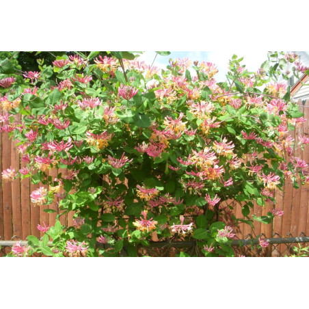 Wybierając Wiciokrzew 'Goldflame' (Lonicera x heckrottii 'Goldflame') z naszej oferty, zyskujesz zdrowe sadzonki pnącza o podwójnej sile: spektakularne, dwukolorowe kwiaty i intensywny, słodki zapach. To długokwitnąca odmiana, która będzie cieszyć Cię kolorem od lata do jesieni. Jest to mrozoodporna liana idealna na słoneczne stanowiska, szczególnie polecana na pergole i do dużych donic na tarasach. Zapewnij mu odpowiednią wilgotność i ciesz się ekspresową wysyłką tego pachnącego klejnotu!