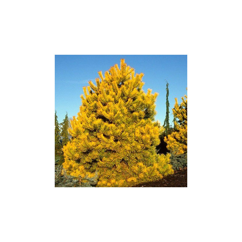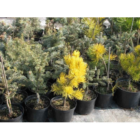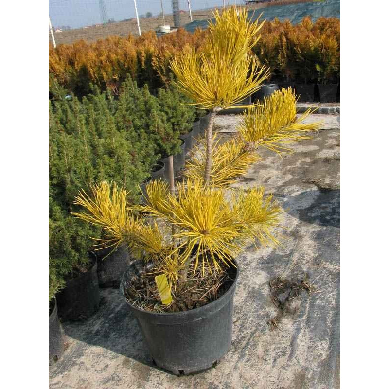 Drzewo o niezbyt regularnej, stożkowej koronie. Rośnie dość wolno - po 10 latach osiąga około 3 m wysokości. Igły zielone, zimą przebarwiają się na żółto; zebrane w pęczkach po dwie. Preferuje stanowisko słoneczne. Ma małe wymagania glebowe. Całkowicie odporna na mróz.