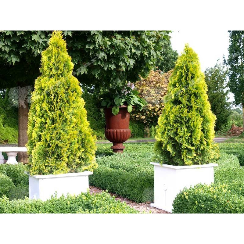 Nowa, karłowa, kulista odmiana żywotnika osiągająca w wieku 10 lat około 30 cm szerokości. Pędy cienkie, gęsto ułożone, pokryte u form młodocianych igiełkami. Wymaga dość żyznych i w miarę wilgotnych gleb. Idealna do ogrodów skalnych, na wrzosowiska, do nasadzeń pojemnikowych. Pięknie się prezentuje na tle jasnego żwirku, kory, lub piaskowca. Nazwa łacińska: Thuja Occidentalis Golden Smaragd. |