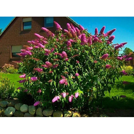 Budleja Harlequin Kwitnie całe lato… Kwiat w postaci 20-30 cm wiechów pojawia się na krzewie w czerwcu i w zależności od aury bardzo często utrzymuje się na pędach do wczesnej jesieni, co moment wypuszczając nowe kwiaty. Kwiat pojawia się już na drugi rok od posadzenia, a bardzo często nawet w pierwszym roku. Istotną cechą rośliny jest błyskawiczny wzrost. W trakcie jednego sezonu potrafi wypuścić nawet metrowe pędy, których w następnym roku wzrost ulegnie podwojeniu.