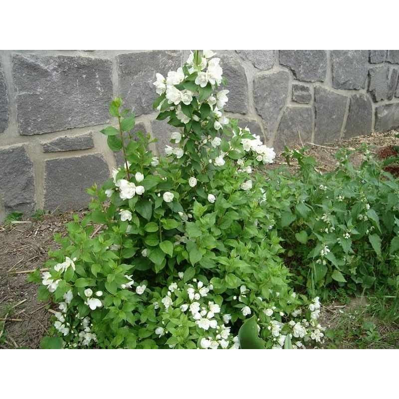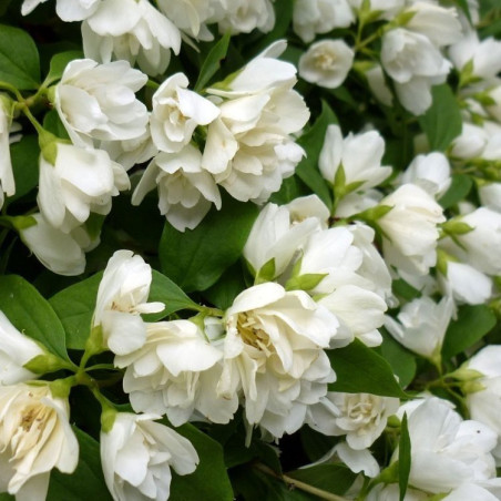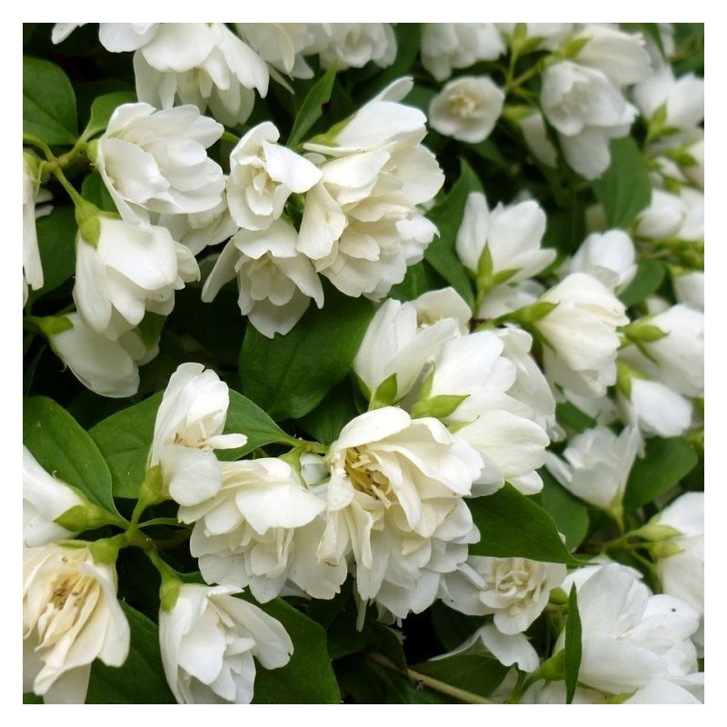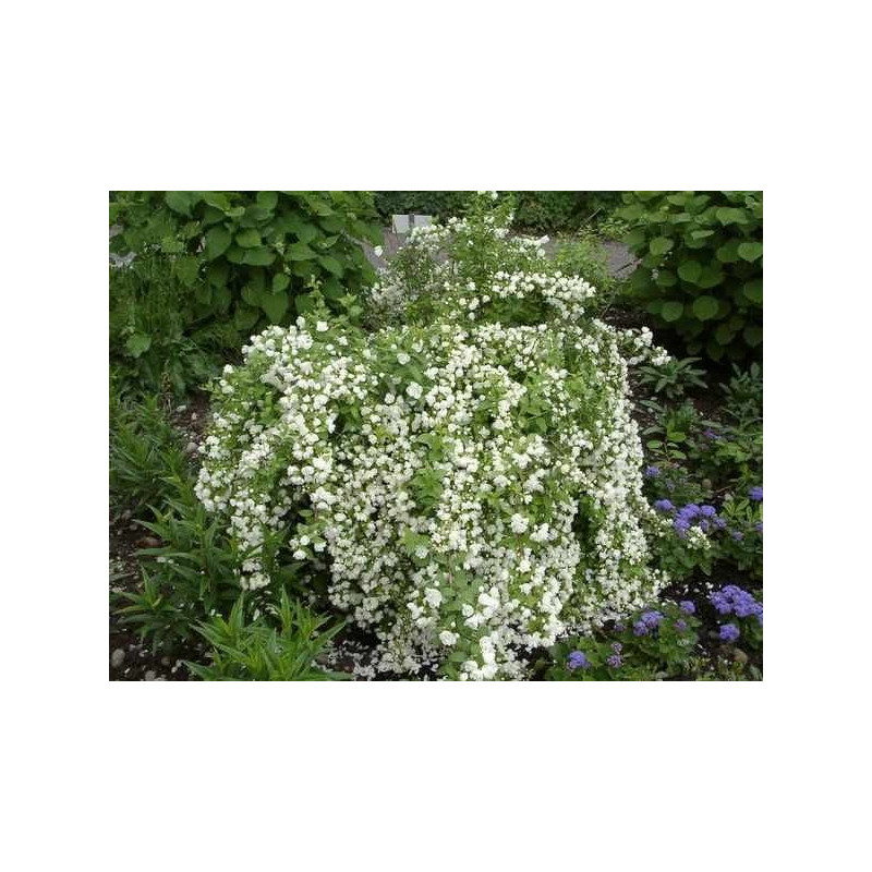 Miniaturowa odmiana jaśminowca z cienkimi i nieco przewisającymi pędami osiągająca około 1,0 m wysokości.Drobniutkie, ciemnozielone, skórzaste liście.Dekoracyjny ze śnieżno - białych, pełnych kwiatów obsypujących krzew na przełomie czerwca i lipca. Preferuje stanowiska słoneczne, lub częściowo zacienione.Dobrze rosnący krzew na wszystkich uprawnych glebach ogrodowych.Idealny do małych ogródków przydomowych, gdzie ze względu na ograniczenia powierzchniowe nie można sobie pozwolić na duże drzewa i krzewy, w tym na inne odmiany jaśminowców i jaśminów osiągających znaczne rozmiary. Absolutna nowość - odmiana nie do zdobycia na polskim rynku. Nazwa łacińska: Philadelphus "Manteau D'hermine". |