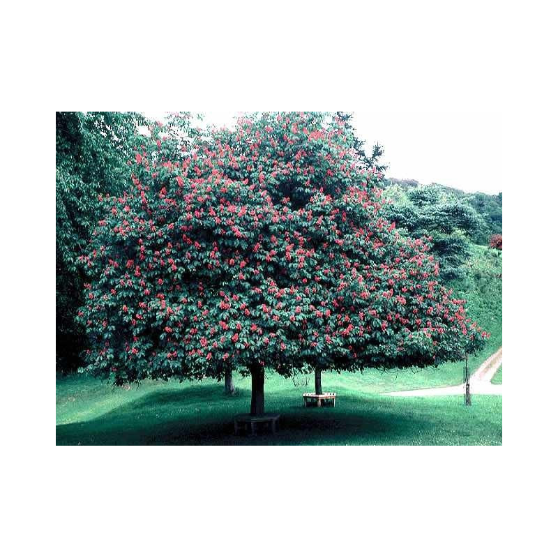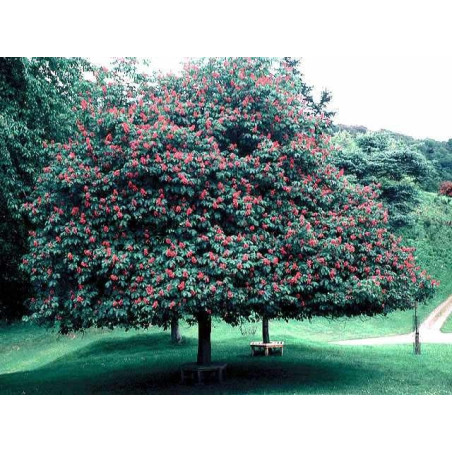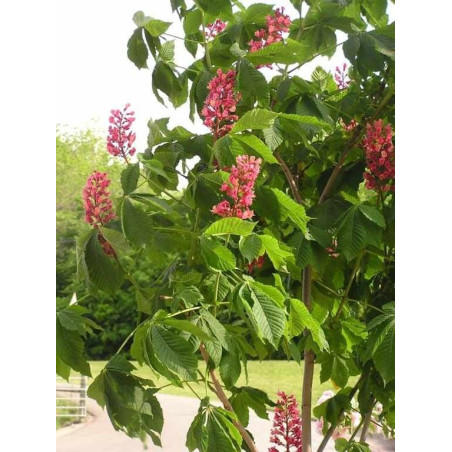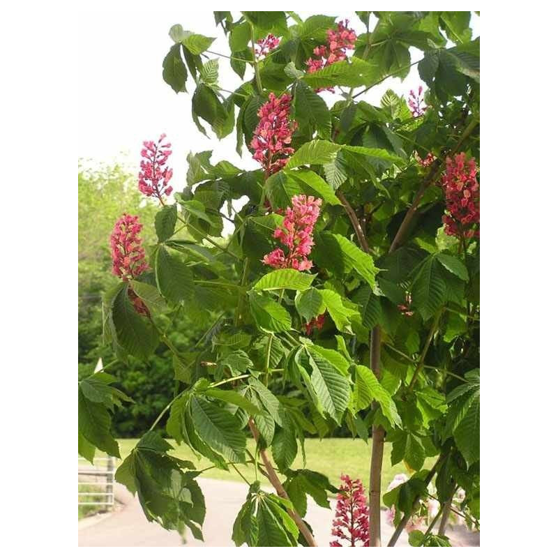 Odmiana kasztanowca nie do zdobycia w polskich sklepach. Szybko rosnące drzewo osiągające od 10 do 15 m wysokości i od 8 do 12 m szerokości. Kwiaty 5 - krotne koloru różowo - czerwonego w wielkich, prostych, wiechowatych kwiatostanach w kształcie piramidy o długości około 30 cm. Oryginalny i niepsotykany jak na kasztanowca kolor kwiatów. Liście naprzeciwległe, złożone, dłoniastopierzaste, 5 - 7 listkowe o długości około 20 cm. Listki ostro zakończone na szczycie, regularnie podwójnie piłkowane. Różowo - czerwone kwiaty zebrane w duże kwiatostany pojawiające się na drzewie w maju. Owoce nazywane kasztanami mają postać kolczastych torebek o średnicy do 6 cm, zawierających od 1 do 3 nasion. Owocuje we wrześniu i w październiku. Absolutna nowość w polskich ogrodach. Najładniejsza odmiana kasztanowca idealna do nasadzeń ogrodowych, parkowych oraz jako drzewo alejowe. Nie ma specjalnych wymagań glebowych. Nazwa łacińska: Aesculus Carnea Briotii |