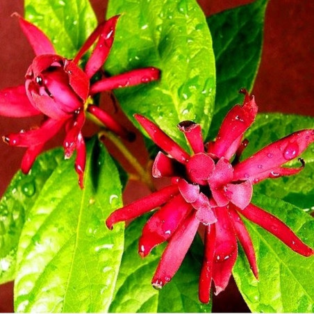 Kielichowiec Florida zwany jest również potocznie ,,Truskawkowym Drzewem". Wyjątkowo rzadki i niespotykany, piękny, rozłożysty krzew o powyginanych gałęziach pochodzący ze Stanów Zjednoczonych. Osiąga około 3,0 m wysokości.Liście są jajowate, lub eliptyczne, ciemno - zielone, omszone od spodu, z wierzchu błyszczące, pachnące, o długości około 15 cm.Jesienią liście przebarwiają się na piękny, złocisty kolor. Dodatową, niespotykaną zaletą Kielichowca Wonnego jest nie tylko intensywny zapach kwiatów, ale również zawartość olejków eterycznych w korzeniach i w liściach.Kwiaty są obupłciowe i wszystkie ich części ułożone są spiralnie na dnie kwiatowym.Wyjątkowo dekoracyjne, piękne, intensywnie pachnące kwiaty o średnicy około 5 cm w kolorze brunatno - bordowym zdobiące krzew na przełomie czerwca i lipca.Silny zapach kwiatów jest źródłem potocznej nazwy ,,Truskawkowy Krzew''. Wedłu niektórych zapach przypomina raczej dojrzałe jabłka, banany, ananasy,czy wino. .Łacińska nazwa Calycanthus pochodzi od greckich słów Kalyx (kielich) i Anhos (kwiat).Polecany do nasadzeń pojedynczych w wyeksponowanych miejscach.Ze względu na piękny zapach kwiatów, pędów i liści zasługuje na honorowe miejsce w pobliżu kącika wypoczynkowego. Preferuje gleby w miarę żyzne i przepuszczalne, umiarkowanie wilgotne, stanowiska słoneczne i osłonięte.Odporny na szkodniki i choroby, odporny na mróz (odporność do -26 stopni Celsjusza), jednak młode okazy dobrze jest przed zimą zabezpieczyć matami.Krewniak magnolii. |