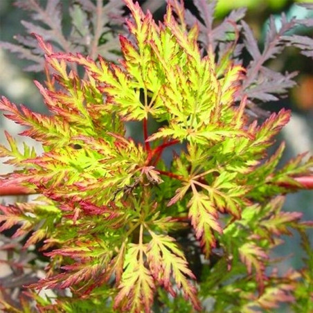 Klon palmowy "Emerald Lace" - to jedyna w swoim rodzaju odmiana klona. Emerald Lace charakteryzuję się bardzo ciekawym zabarwieniem liści, które na początku okresu jesiennego są jasnozielone po czym z biegiem czasu przebarwiają się na żółto po czym w końcowej fazie przebarwiają się na krwisto-czerwony kolor. Odmiana ta dorasta do maksymalnie 3 metrów dlatego świetnie nadaje się do ogródków przydomowych oraz ogrodów tematycznych.
