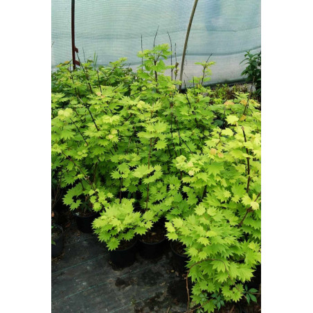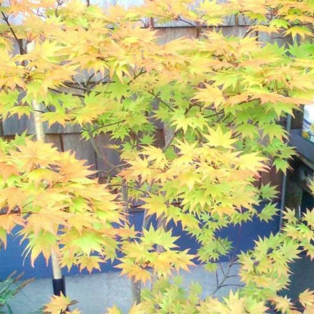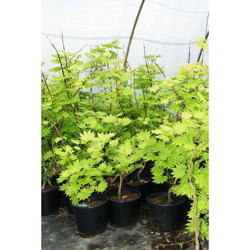 Klon japoński Shirasawy Aureum to niezwykle malownicze niskie drzewko lub krzew o żółto-zielonych liściach. Kolor liści jest utrzymywany od wiosny do jesieni, jesienią liście przebarwiają się na odcienie pomarańczy. Rośnie bardzo powoli. Potrzebuje ok. 10 lat aby uzyskać 2 metry wysokości. Wymaga stanowisk osłoniętych, półcienistych. Gleba żyzna, próchnicza, wymaga ściółkowania.Młode sadzonki wymagają okrycia na zimę. Klon palmowy shirasawany Aureum to niezwykle malownicze niskie drzewko lub krzew o żółto-zielonych liściach. Kolor liści jest utrzymywany od wiosny do jesieni, jesienią liście przebarwiają się na odcienie pomarańczy.