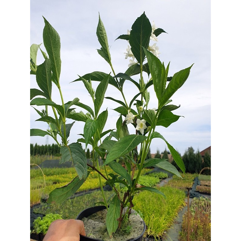 Krzewuszka cudowna CandidaRoślina, która nie wymaga opieki... Jeżeli szukamy krzewu bezobsługowego, odpornego na niekorzystne warunki bytowe to z pewnością krzewuszka cudowna Candida powinna się znaleźć w centrum naszej uwagi. Cała rodzina Krzewuszek (Weigela) liczy kilkanaście różnokolorowych odmian. Są wśród nich rośliny o zabarwieniu: białym (Weigela Candida) różowym (np, krzewuszka rumba) oraz czerwonym (Krzewuszka cudowna Red Princess). Krzewuszki są także zróżnicowane ze względu na kolor liścia, który przyjmuje barwy zielone lub czarno-purpurowe oraz na docelową wysokość.. Krzewuszka cudowna Candida - dlaczego właśnie ona?Krzewuszka Candida jest krzewem dorastającym do 150 cm wysokości oraz podobnej szerokości. Charakteryzuje się obfitym kwitnienie, które obserwujemy w miesiącach letnich. Biały kwiat pojawia się na krzewie już pod koniec czerwca i przy odpowiedniej opiece zdobi roślinę do września. Krzewuszka cudowna Tango - jak się nią zajmować?Krzewuszkę przycinamy wczesną wiosną po ustaniu przymrozków. Amatorzy przycinania jesiennego mogą w okresie przedzimowym pobudzić roślinę do życia, co jest niedopuszczalne. Wiosną wykonujemy cięcie, które ma na celu pobudzić roślinę do rozkrzewienie się oraz szybszego wzrostu. Pamiętajmy, jeżeli chcemy cieszyć się kwitnieniem do jesieni należy usuwać przekwitnięte kwiaty i wytworzone nasiona. Krzewuszka cudowna - jakie lubi środowisko?Pamiętajmy o tym, żeby krzew powtarzał kwitnienie należy wycinać przekwitnięte owocnie, które przyjmują postać strąków. Dlaczego Krzewuszka Candida jest wyjątkowa? Możemy ja wysadzić wszędzie i w niemal każdych warunkach. Nie wymaga częstego podlewania, dobrze znosi przejściowe susze. Jeżeli mamy działkę, którą odwiedzamy naprawdę okazjonalnie to krzewuszka Candida sprawdzi się lepiej niż większość krzewów.. Nazwa łacińska: Weigela florida "Candida".