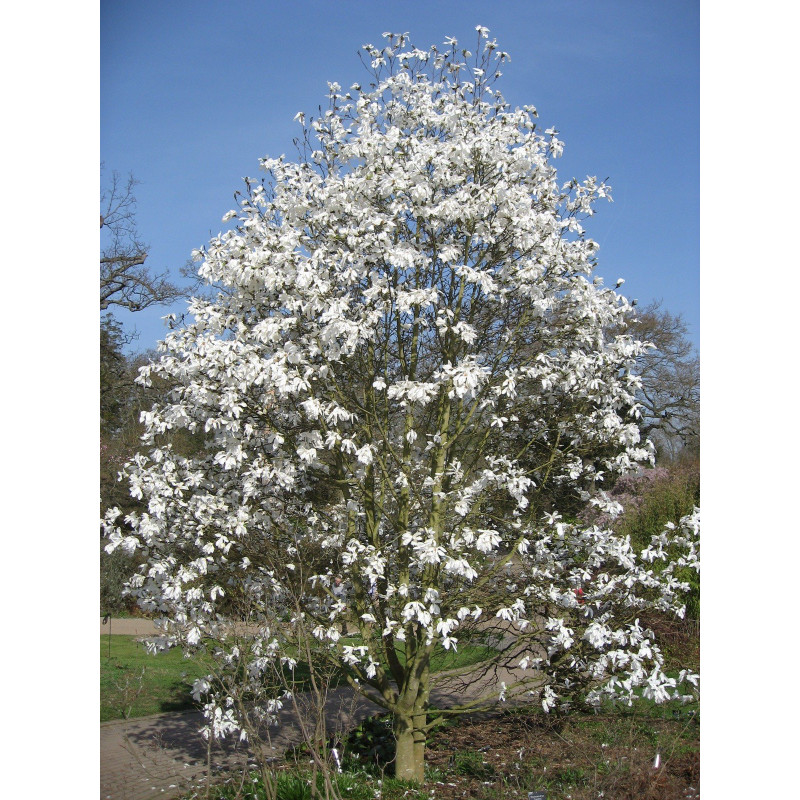 Śnieżnobiała odmiana magnolii o śnieżobiałych kwiatach.