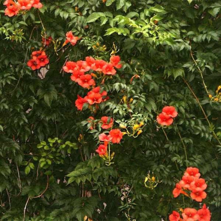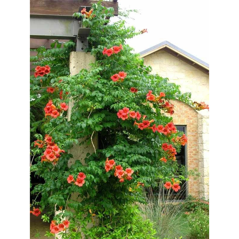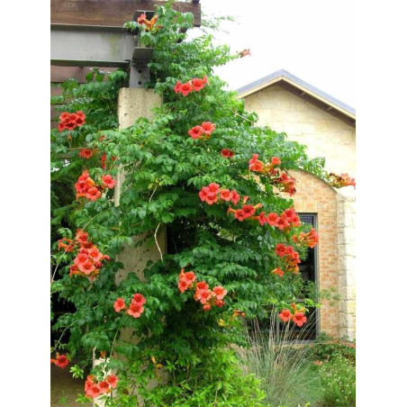 Pnącze z trąbkami. Jego zaletą jest intensywny przyrost wynoszący do 200 cm rocznie. Latem pokrywa się masą pomarańczowo - czerwonych, uroczych kwiatów w kształcie trąbek o długości około 7 cm i średnicy 3 - 5 cm, które następnie przekształcają się w owoce w kształcie długich, zwisających strąków.
