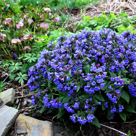 Miodunka wąskolistna 'Blue Ensign' to bardzo atrakcyjna bylina, która wprowadzi barwny akcent do Twojego ogrodu. Miodunka wręcz hipnotyzuje niebieskimi kwiatami.. Dorasta do około 25-30 cm wysokości i 30-45 cm szerokości, co daje efekt, zwartych, gęstych kęp. Kwiaty na początku są karminowe, ale bardzo szybko nabierają wyrazistej, niebieskiej barwy. Miodunka 'Blue Ensign' to naprawdę zjawiskowa ozdoba ogrodu. która przyciągnie wzrok nawet najbardziej wymagających botaników. Kwiaty fantastycznie prezentują się na tle ciemnozielonych liści i przyciągają mnóstwo motyli i pszczół.