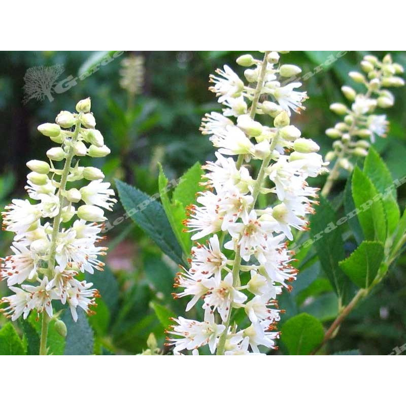Piękny, w pełni mrozoodporny krzew obsypujący się kwieciem od połowy lipca do połowy września. Miododajne, białe kwiaty o oryginalnym kształcie. Osiąga około 2,0 m wysokości i 1,5 m średnicy. Przybiera pokrój kopulasty. Liście latem ciemnozielone, błyszczące, jesienią przebarwiają się na odcienie złota Największym walorem dekoracyjnym clethy są białe, 20 - sto cm intensywnie pachnące, miododajne kwiaty. Prawdziwy wabik na motyle. Preferuje stanowiska półcieniste, gleby w miarę żyzne i wilgotne, najlepiej o kwaśnym odczynie. Jest w pełni mrozoodporna. Wczesną wiosną należy przyciąć roślinę na wysokość około 30 cm od ziemi. Odmiana nie do zdobycia na polskim rynku. Prawdziwy rarytas dla kolekcjonerów rzadkich okazów roślin. Nazwa łacińska: Clethra Alnifolia Huming Bird |