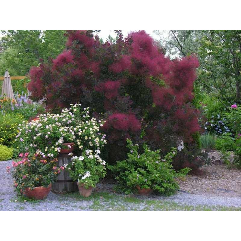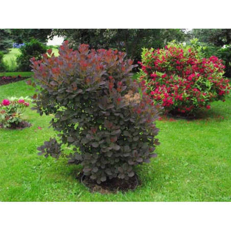 Perukowiec "Royal Purple" jest jedną z najbardziej rozpoznawanych roślin o czerwonym wybarwieniu. Jest krzewem dorastającym do 3 metrów wysokości i ok. 2 szerokości. Cechą charakterystyczną są purpurowe liście, które pokrywają całą roślinę. Wiosną młode przyrosty wybarwiają się w tonacji krwisto czerwonej, z biegiem czasu delikatnie bordowieją. Na przełomie czerwca i lipca rodzi czerwone peruczki, dzięki którym zawdzięcza swoją nazwę. Perukowca wysadzamy na stanowisku słonecznym, dzięki czemu nabierze bardziej intensywnych kolorów. Najlepiej rozwija się na glebach przepuszczalnych, o małej wilgotności dzięki czemu znajduję zastosowanie zarówno na terenach miejskich, jak i w ogrodach przydomowych.Jeżeli chcemy mieć w ogrodzie roślinę o ciekawej kolorystyce, która wyróżni się na tle zieleni powinniśmy zastanowić się nad zakupem perukowca. Perukowiec "Royal Purple" jest jedna z niewielu roślin, które swój atrakcyjny wygląd i kolorystykę utrzymuję przez cały sezon od wiosny do pierwszych przymrozków.