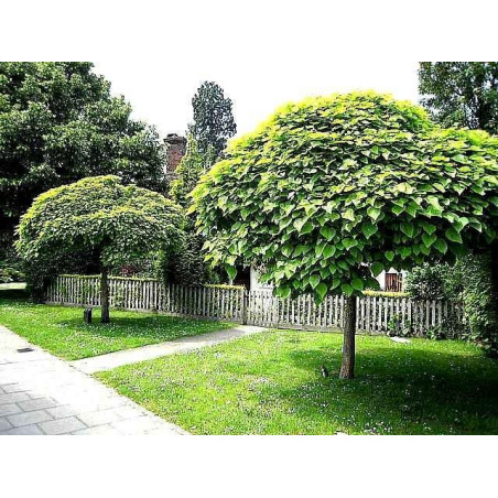 Surmia Katalpa - to wyjątkowe drzewko pochodzące z Azji, charakteryzująca się niespotykanym pokrojem oraz barwą liści oraz kwiatów. Dorasta w naszych warunkach do około 10 metrów wysokości i około 4 metrów szerokości. Głównym z wielu walorów dekoracyjnych tego drzewka są długie, sercowate 15 cm. Żółto-białe kwiaty, nakrapiane na fioletowo, zebrane są w okazałe kwiatostany. Pojawiają się w połowie maja i wówczas surmia przypomina ogromny parasol. Katalpa kwitnie w lipcu i w sierpniu. Jest drzewem nie wymagającym opieki. Sprawdzi się idealnie sadzona w pojedynczo wzdłuż altan lub w grupach - jako część kompozycji.
