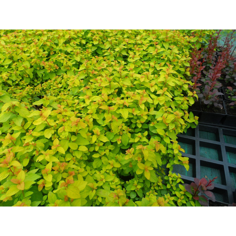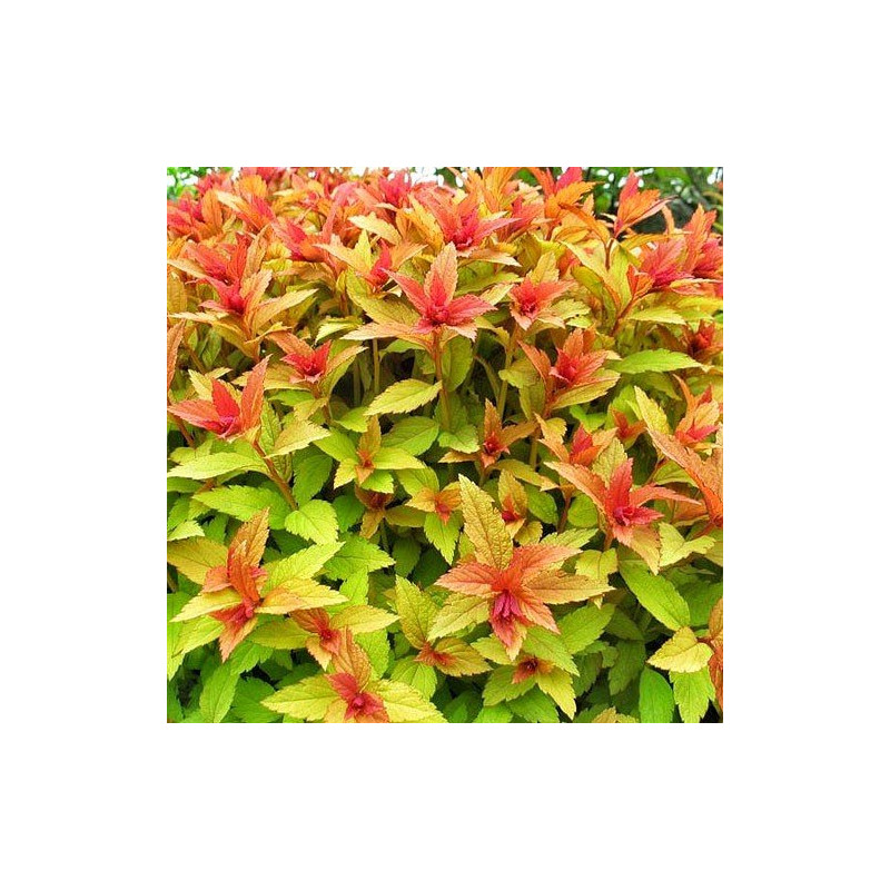 Tawuła "Goldflame" (Spiraea japonica "Goldflame") jest jednym z najpopularniejszych krzewów ozdobnych. To niski krzew o półkulistym pokroju, osiągający wysokość 80cm i nieco większą szerokość. Wiosną pojawiają się na nim liście w kolorze czerwieni, a następnie przybierają barwę żółto zieloną. Latem liście są zielone, a jesienią znów zmieniają kolor na intensywmie miedziany. W lipcu pojawiają się na krzewie ciemnoróżowe, drobne kwiaty.