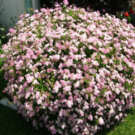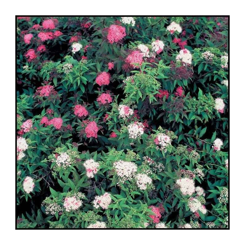 Niezwykle oryginalny krzew, na którym występują jednocześnie kwiaty ciemnoróżowe i białe. Należy do podstawowych krzewów ozdobnych, odznacza się bowiem obfitym kwitnieniem, a przy tym wytrzymałością na mróz. Idealna do nasadzeń pojedynczych oraz na uginające się pod ciężarem różowo-białych kwiatów żywopłoty. Krzew obficie rozgałęziony i silnie rosnący o wysokości około 80 cm, szerokości ok. 100 cm i pokroju kulistym. Roczny przyrost wynosi ok. 15 cm. Kwitnie bardzo obficie na przełomie czerwca i lipca. Liście ciemno-zielone przebarwiają się jesienią na odcienie żółci, pomarańczy i czerwieni. Preferuje stanowiska słoneczne, w miejscach zacienionych słabiej kwitnie. Nie ma specjalnych wymagań glebowych. Nazwa łacińska: Spirea Japonica Genpei |