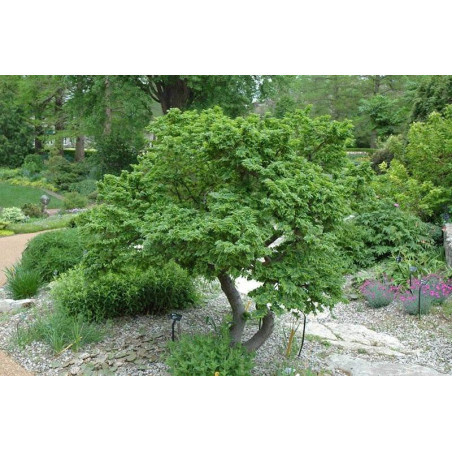 Karłowa, powoli rosnąca odmiana. Po 10-15 latach osiąga 150 cm wysokości. Prawdziwą ozdobą są drobne, gęsto ułożone, ciemno zielone liście. Liście małe lekko skręcone, piłkowane o długości około 2-3 cm. Pędy początkowo delikatne i minimalnej grubości z czasem po latach dochodzą do sporych rozmiarów. Wiąz jest mało wymagający co do gleby. Rośnie praktycznie w każdych warunkach glebowych. Stanowisko od słonecznego do zupełnego cienia. Idelany do ogrodów przydomowych, ogrodów japońskich, jako soliter. Nazwa łacińska: Ulmus Holandica "Jacqueline Hillier". |