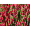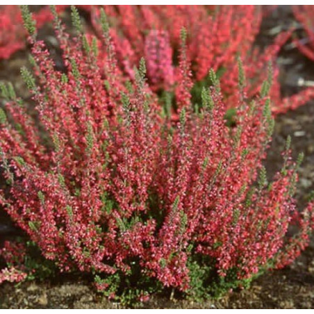 Wrzos "Larissa" (Calluna vulgaris 'Larissa') to wolno rosnąca krzewinka z drobniutkimi, ciemnozielonymi listkami o poduszkowatym pokroju. Kwitnie w intensywnie czerwonym kolorze, bardzo obficie i długo bo już od początku sierpnia, aż do końca listopada. Doskonale nadaje się do sadzenia w przydomowych ogródkach, na skalniakach i wrzosowiskach wśród innych odmian wrzosów, ale równie dobrze prezentuje się w donicach i może stanowić dekorację balkonu czy tarasu. Wymaga gleby próchniczej i przepuszczalnej o kwaśnym odczynie. Bardzo źle reaguje na nadmiar wilgoci. Jest rośliną w pełni mrozoodporną.