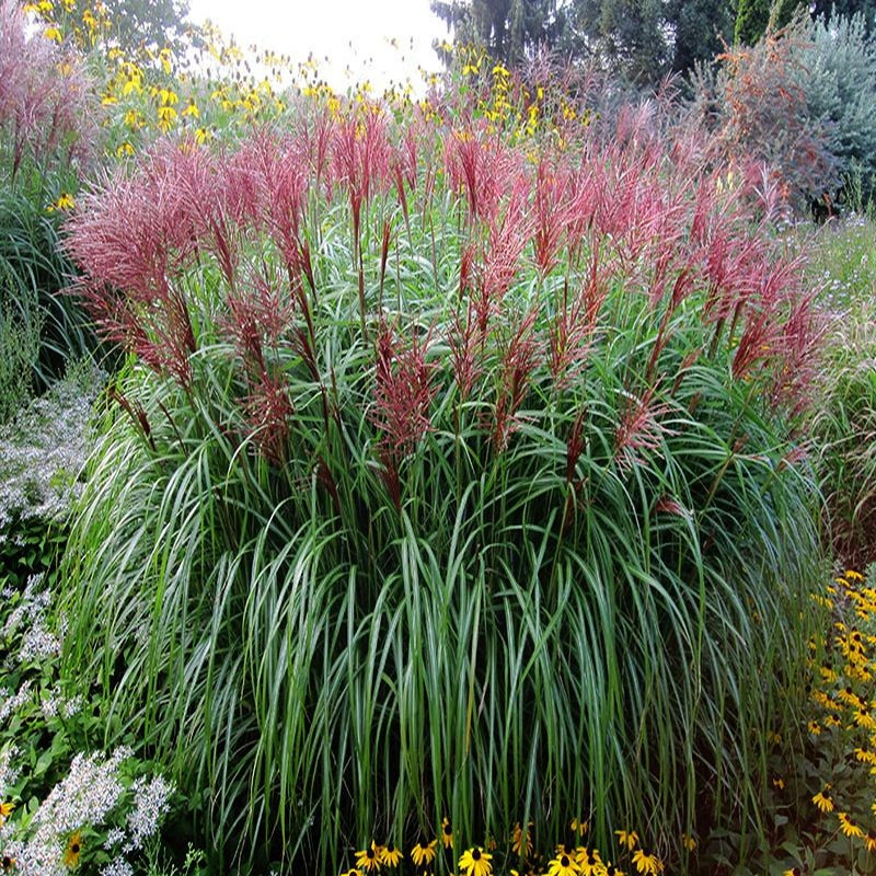 Miskant chiński Yakushima Dwarf to od dawna kultywowany i nadal pozostający jedną z najpopularniejszych odmian wśród miskantów. Tworzy zwarte, wyprostowane, bardzo gęste kępy. Liście stosunkowo wąskie i delikatne, o szerokości około 10 mm, zielone, z białym nerwem pośrodku. Kwitnie od września. Miedziano - czerwone kwiatostany w postaci pierzastych wiechów wyrastających ponad listowie, jesienią przebarwiają się na srebrno - brązowe. Liście osiągają wysokość 170 cm, kwiaty 200 cm. Kępy rozrastają się do średnicy 70 - 90 cm. Bardzo dobry soliter lub tło dla innych roślin kwitnących. Idealny do nasadzeń pojedynczych oraz jako tło obwódek bylinowych. Niezbędny w ogrodach czysto trawiastych.