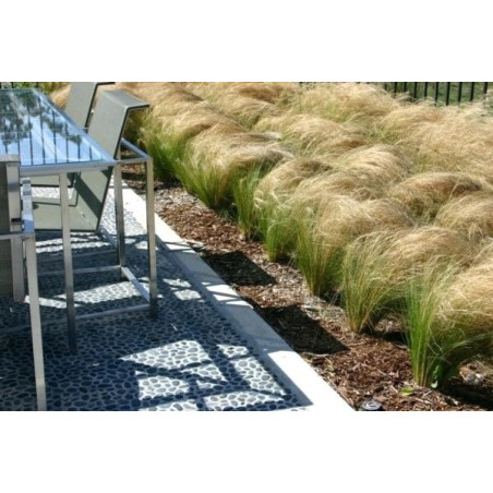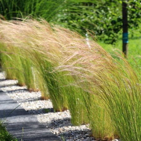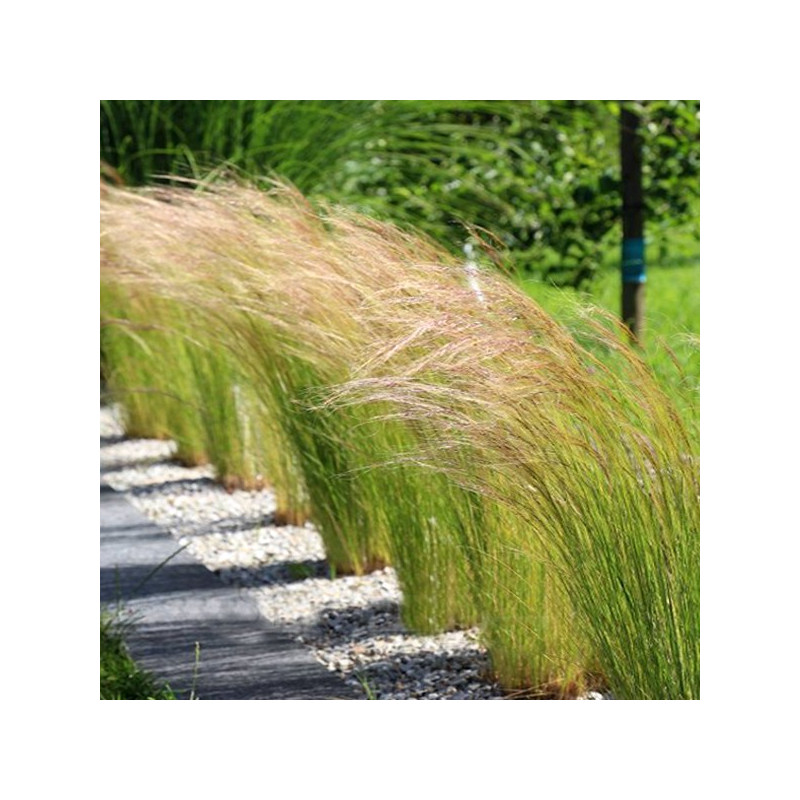 Stipa tenuissima „Pony Tails” to jedna z najładniejszych wieloletnich traw. Tworząca gęstą, błyszczącą zieloną kępę liści sprawia wrażenie jakby kołysała się na wietrze z pięknymi pionowymi piórami. Dorasta do około 50 cm metra wysokości i około 60 cm szerokości. Początkowo jej kwiaty są białe po czym przebarwiaja się na srebrzysto biały kolor. Roślina nie wymaga opieki, należy zapewnić jej tylko odpowiednią glebe oraz podlewać w czasie susz czy upałów. Cudownie prezentować będą się sadzonę wzdłuż chodników, alej czy też wysadzona w grupie tworząc istny dywan.