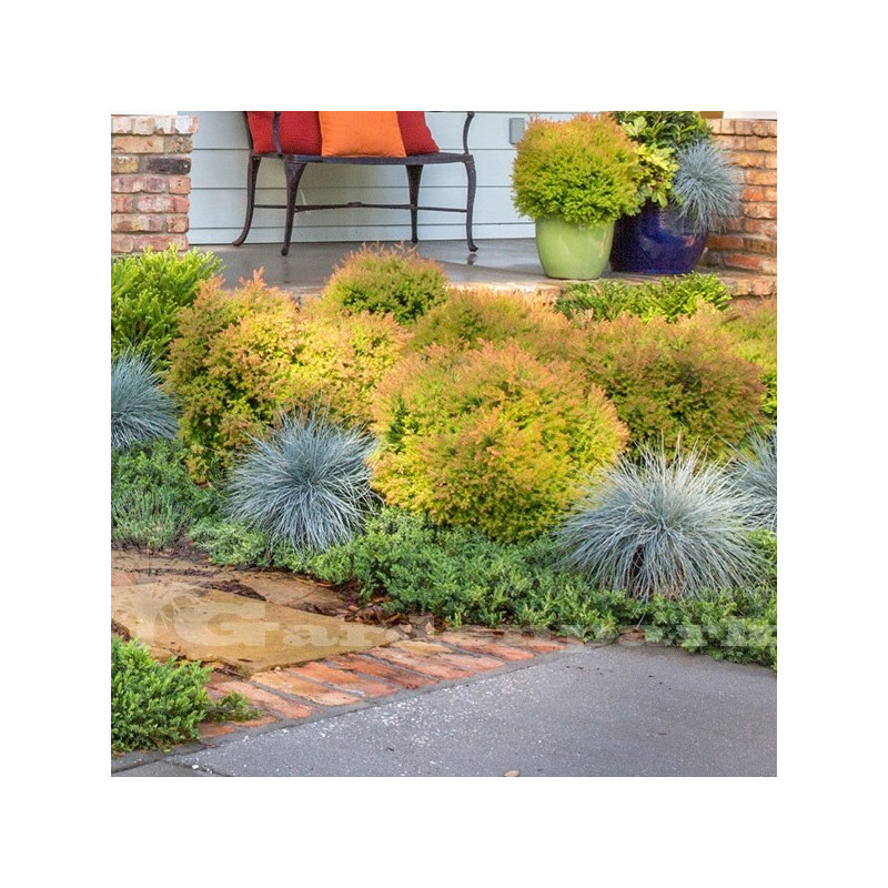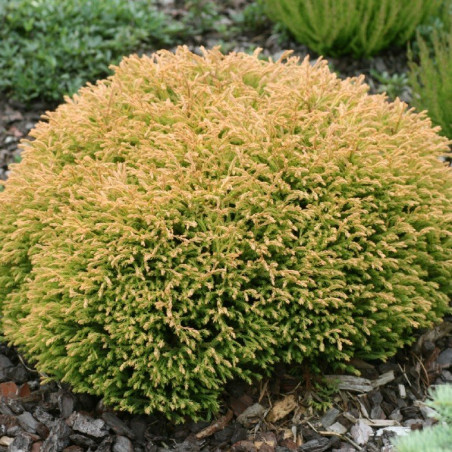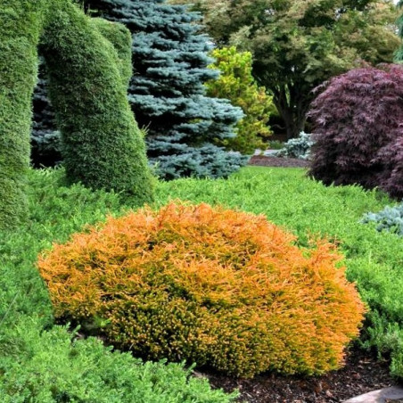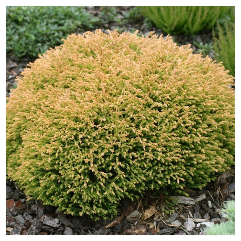 Żywotnik Zachodni "Golden Tuffet" (Tuja) to bardzo wolnorosnąca odmiana żywotnika o pokroju kulistym, zwartym, dorastająca do 0,6 m wysokości. Młode pędy i łuski (igiełkowate) maja żółto-pomarańczową barwę, utrzymującą się również w czasie zimy. Stanowiska słoneczne. Gleby dość żyzne, wilgotne. Odmiana idealna do tworzenia barwnych kompozycji.
